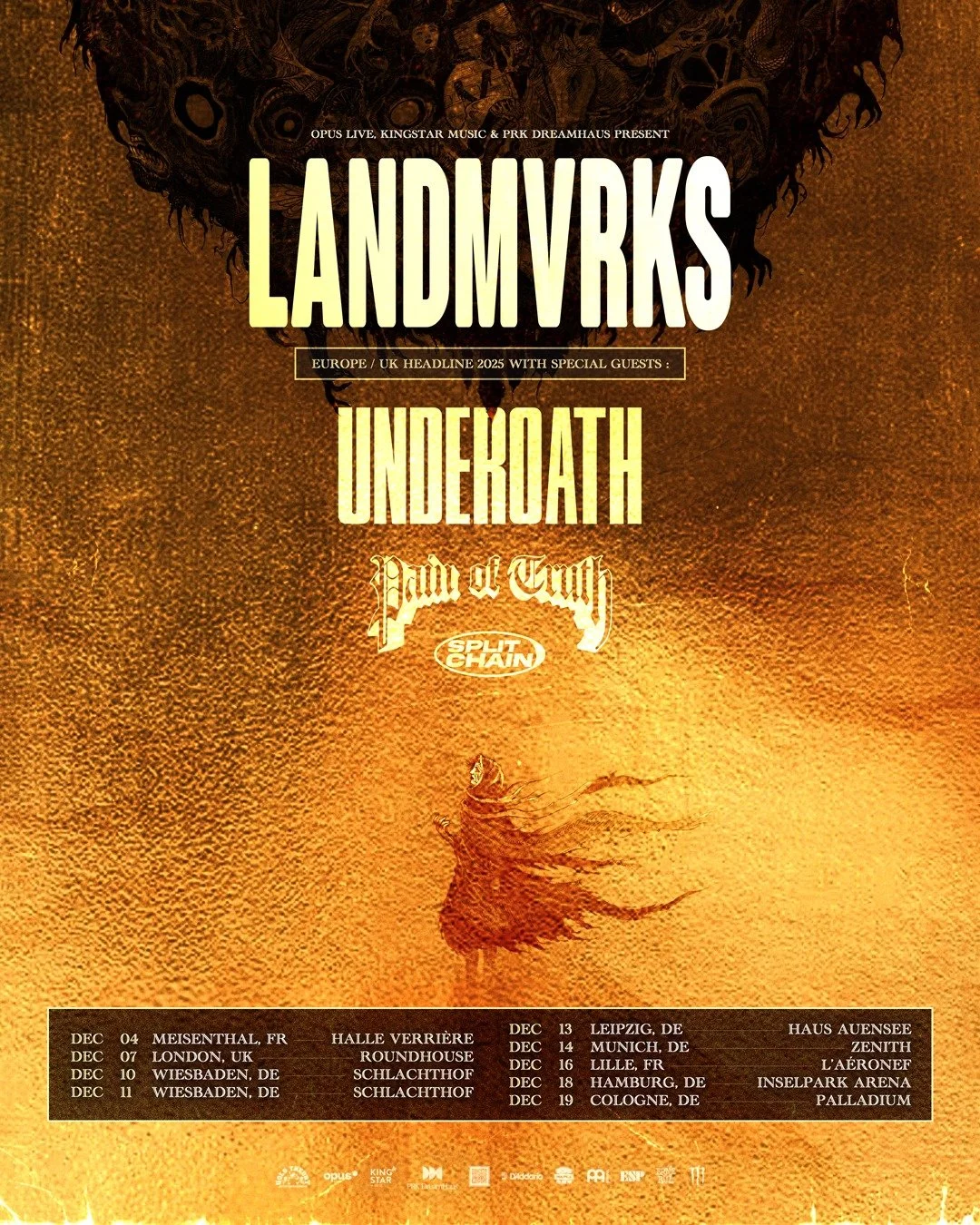 LANDMVRKS, the French metalcore force known for their emotionally intense songwriting, ferocious breakdowns, and striking electronic undertones, will be capturing the stage at London’s iconic Roundhouse on Sunday, 7 December 2025, as part of their headline European tour behind The Darkest Place I’ve Ever Been. The lineup is stacked with top-tier support from Underoath, Pain of Truth, and Split Chain, promising a night of unrelenting energy and dynamic contrast.