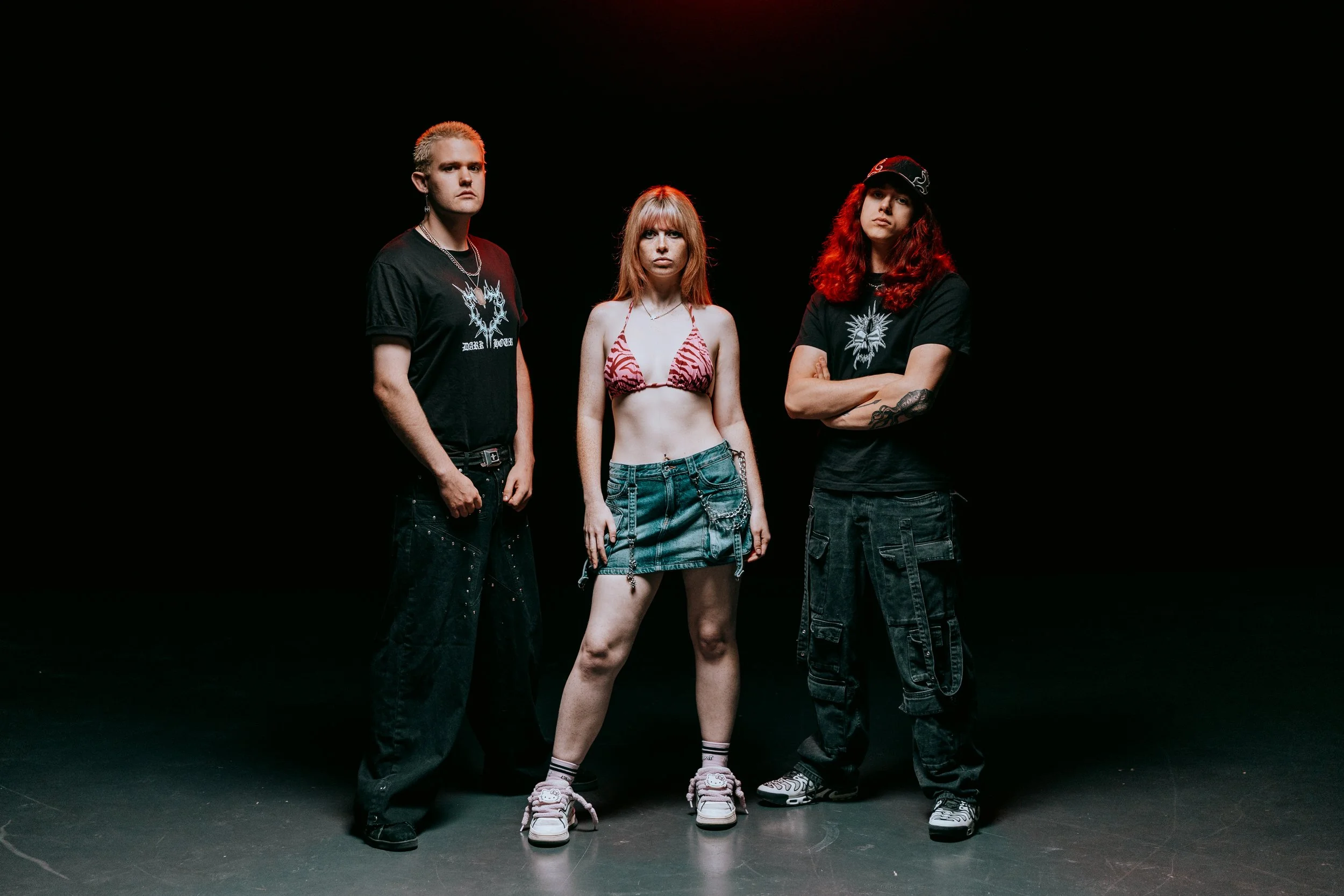Brighton trio EVILLE are blazing their own trail with brat metal – a self-coined genre that smashes together bratty, hyper-feminine lyricism and fierce, unrelenting metal instrumentals. The result? A riotous blend of chaos, confidence, and catharsis.